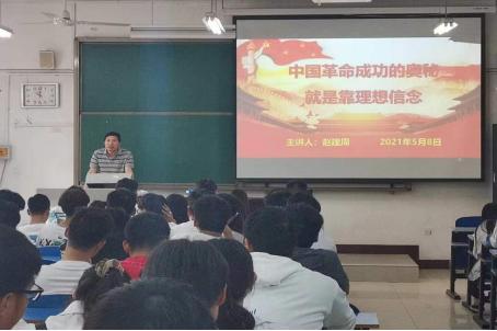 为坚定员工理想信念,了解壮烈史事。3044永利集团经理赵建周于5月8日上午在A07-111向19级自动化专业全体员工讲述了以“中国革命成功的奥秘就是靠理想信念”为主题的思政课。
