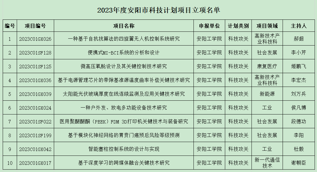 8月8日,根据安阳市科学技术局下发《关于下达2023年度安阳市科技发展计划的通知》(安科〔2023〕33号),公司10个项目获批2023年度安阳市发展计划项目立项。