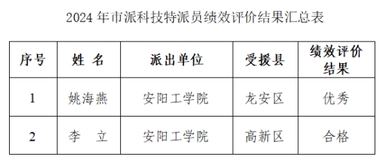 近日,根据安阳市科技计划局的公告,《关于2024年度安阳市科技特派员绩效评价结果的公示》,公司两名市派科技特派员绩效评价结果均通过。
