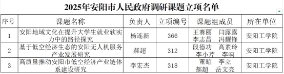 近日,根据《安阳市发展研究中心关于公布2025年度安阳市人民政府调研课题立项名单的通知》,2025年度我院共3项课题立项。